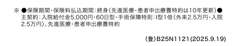 ■保険期間・保険料払込期間: 終身(先進医療・患者申出療