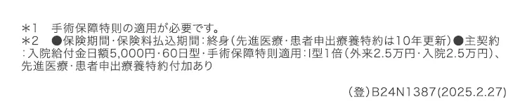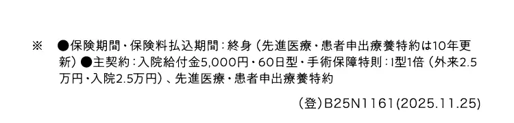 ■保険期間・保険料払込期間: 終身(先進医療・患者申出療