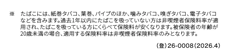 20歳未満の場合、 適用する保険料率は非喫煙者保険料率のみとなります。