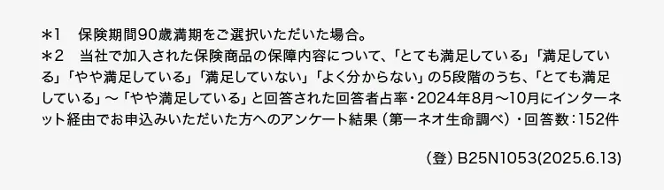 *2 当社で加入された保険商品の保障内容について、「とても満足している」 「満足してい
